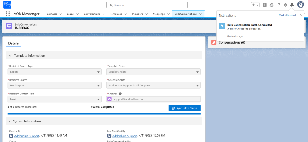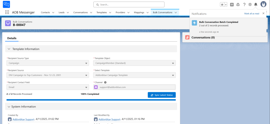 Refresh the page to see the conversations record having the detailed information about the conversation.